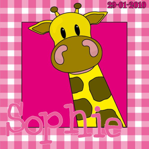 naamschilderij doorkijk Giraf Menno roze ruit